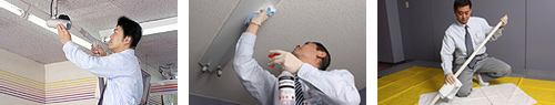 照明器具は手の届きにくい高所にあるので掃除がしにくく、ホコリやタバコのヤニなどで汚れています。それらの影響で明るさが損なわれると雰囲気まで暗くなり、経営や作業に影響を及ぼすことも考えられます。照明器具クリーニングは、専用の資器材を使って足場を組み、目には見えない部分についた汚れ、ヤニを落とします。